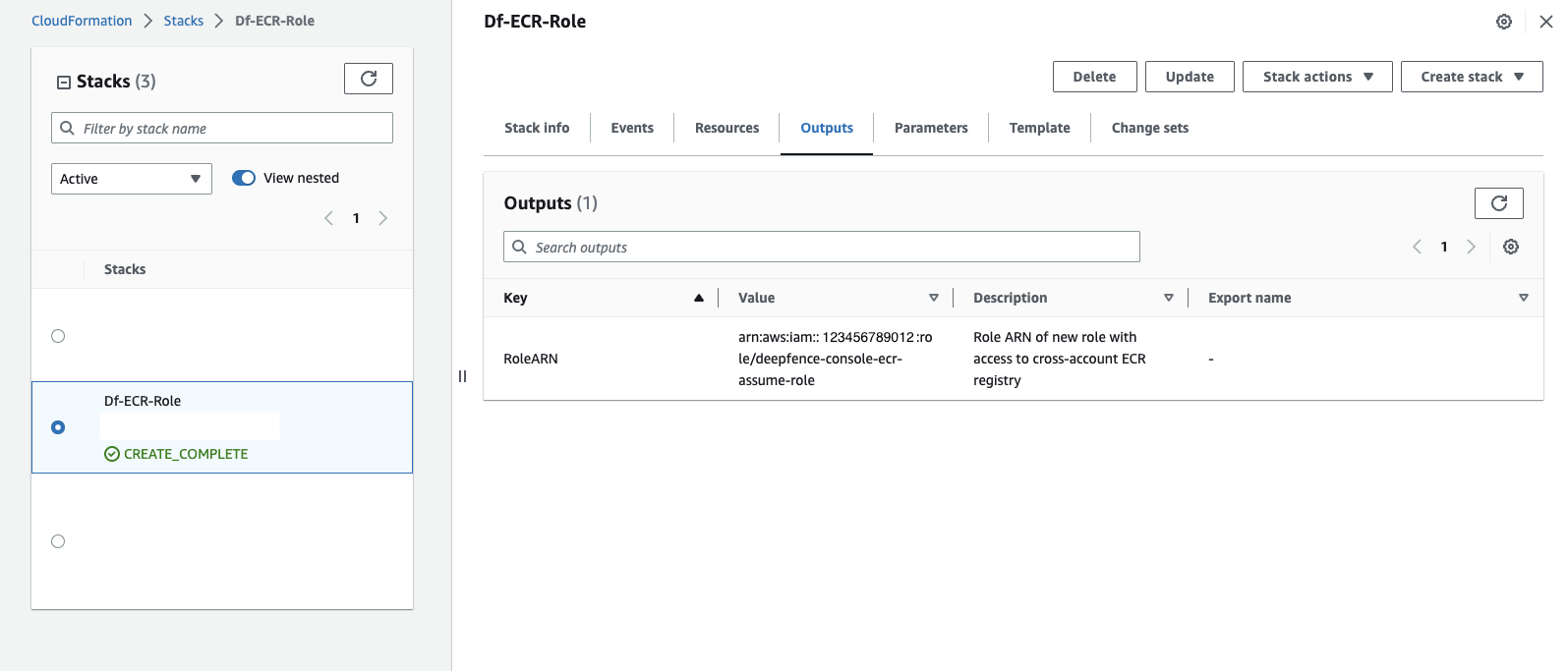 1. The IAM role to be assigned to the Deepfence Console EC2 instance can be deployed using CloudFormation with deepfence-ecr-role-setup.template.